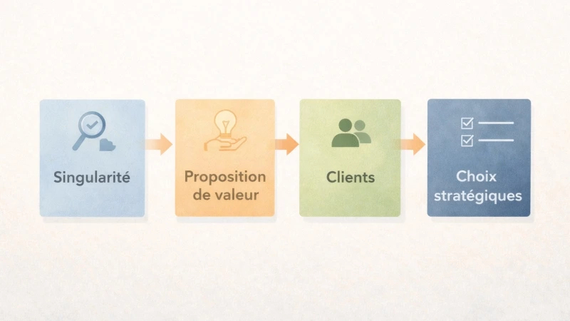 Le témoignage de participants issus de bureaux d’architecture confirme d’ailleurs que ces outils stratégiques sont perçus comme faciles d’accès, simples à mettre en œuvre et mobilisables très rapidement dans le quotidien. C’est un point important, car il enlève à la stratégie son apparence de discipline lointaine ou lourde. Dans la vidéo, plusieurs outils sont évoqués pour aider à clarifier ce qui distingue un bureau : le modèle VRIO, qui permet d’examiner ce qui fait la singularité d’une compétence ou d’un service, et le Business Model Canvas, présenté comme un puzzle méthodologique utile pour structurer une activité, définir sa proposition de valeur et segmenter plus clairement ses clients.